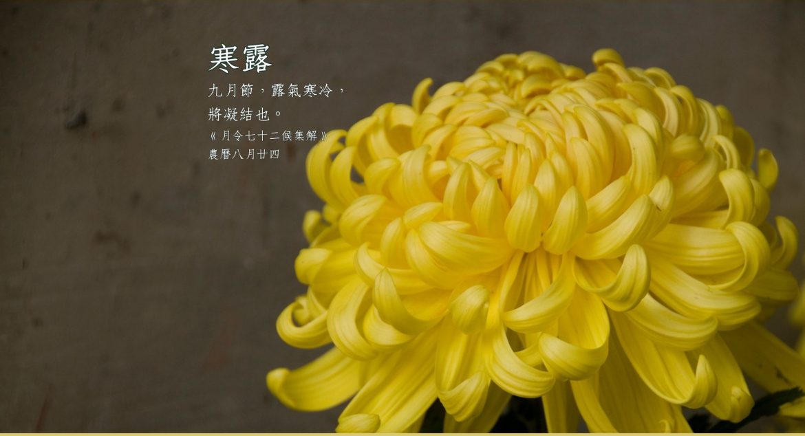 一候,鸿雁来宾;二候,雀入大水为蛤;三候,菊有黄花。